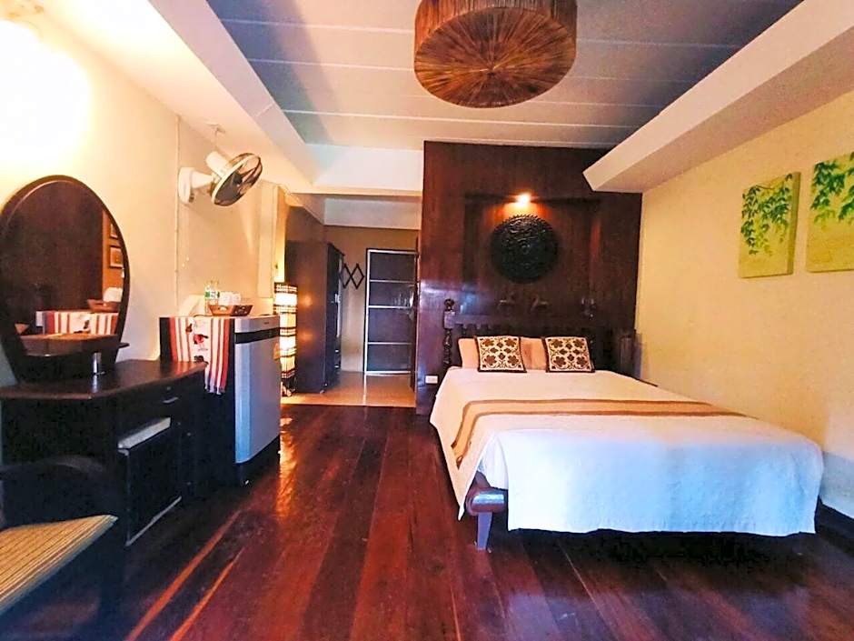 Bungalow comes with air-conditioning, TV and refrigerator.